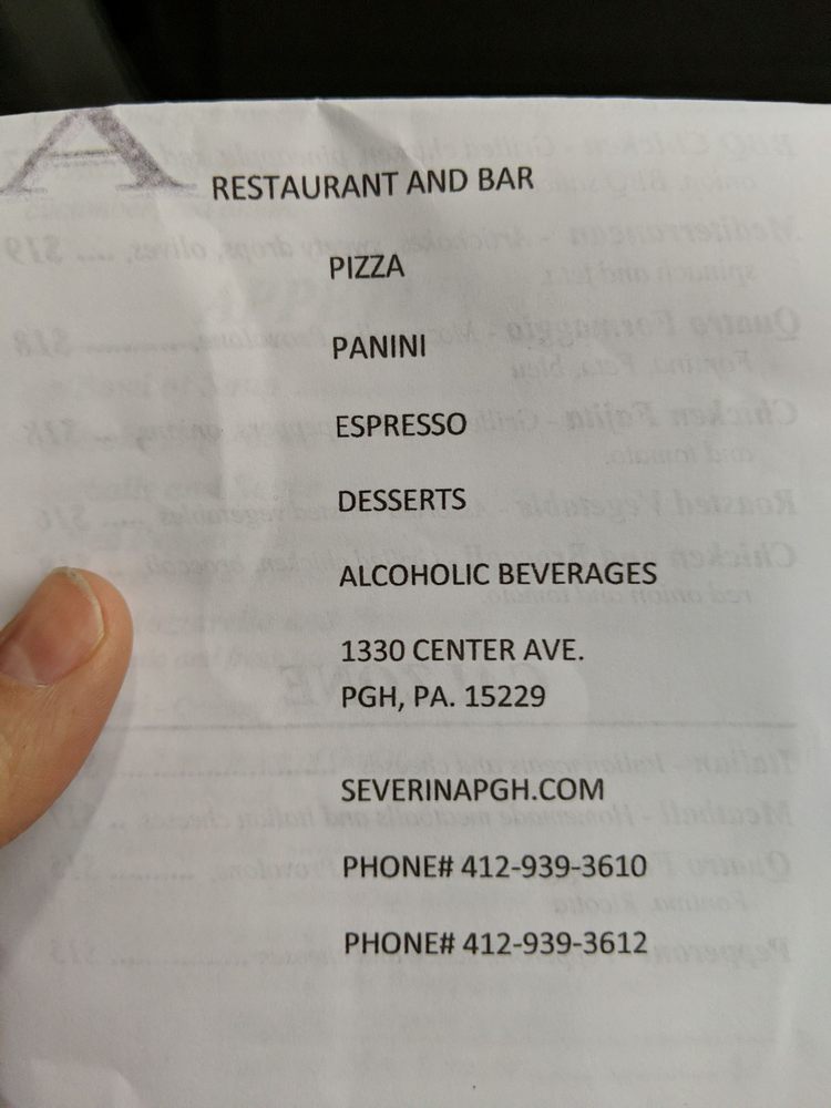 Located in Pittsburgh, PA, Severina is a delightful Italian pizza restaurant that offers a variety of amenities such as reservations, takeout, delivery, and outdoor seating. Known for its home recipes and delectable desserts, Severina has garnered rave reviews from customers. One reviewer praised the white pizza for its garlicky flavor and perfect crust, while another highlighted the pasta dishes as some of the best they've ever had. The chef's expertise shines through in dishes like sausage & pepper pasta and roasted red pepper pasta with chicken. Additionally, the in-house desserts, including cannoli and gelato, are not to be missed. With a cozy atmosphere and friendly service, Severina is a hidden gem where every bite is a culinary delight.